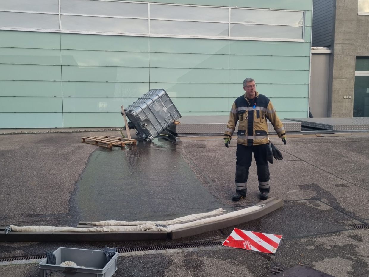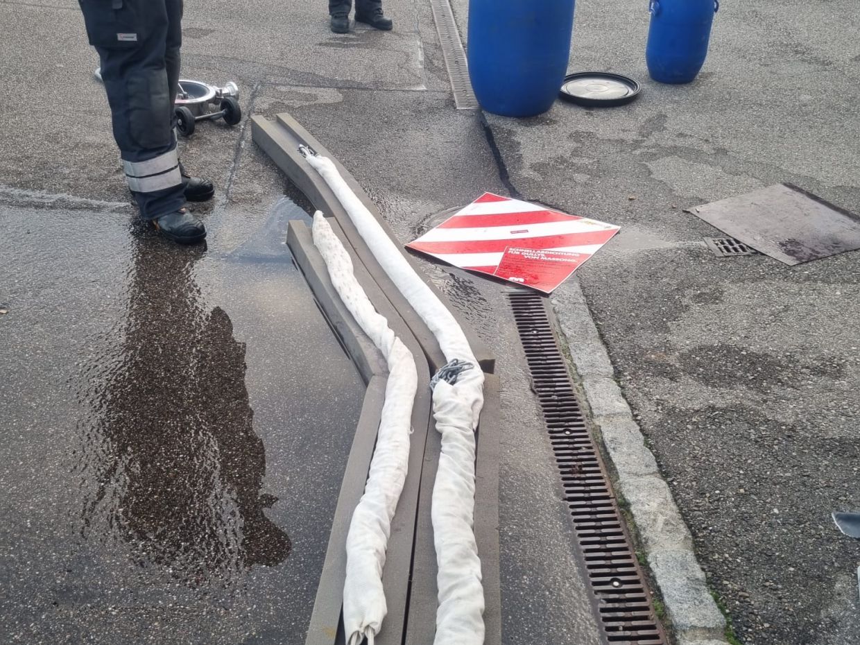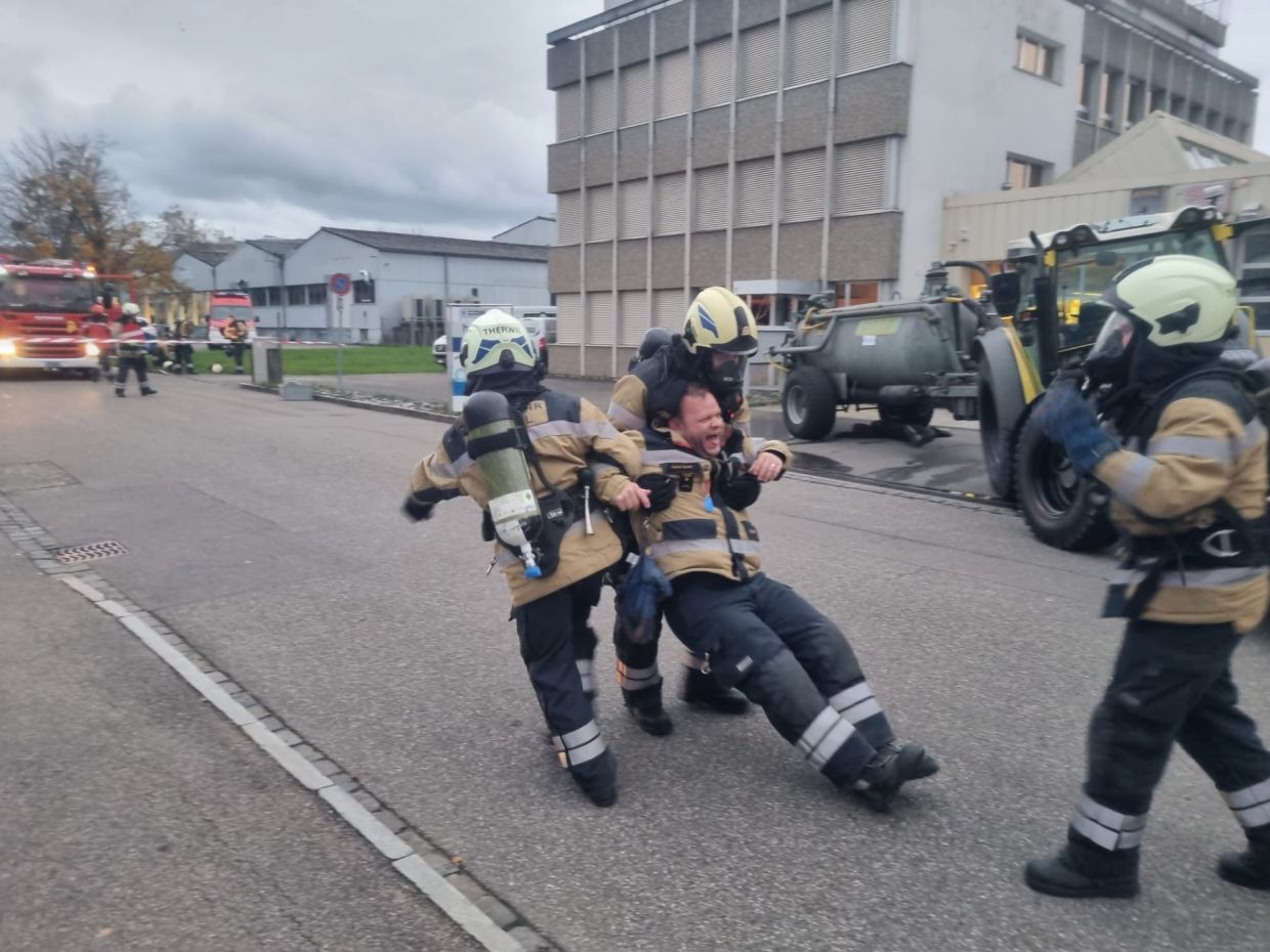Dekontamination, Auffangen, Retablieren - das waren die Stichworte zur vierten und letzten Mannschaftsübung in diesem Jahr. Wir gehen ein bisschen detaillierter darauf ein: Einen Patienten im Notfall schnell zu dekontaminieren ohne den Schaden für die Umgebung und den Patienten zu vergrössern war Thema in der ersten Lektion. In Lektion 2 wurde das Auffangen von verschiedenen Medien, also zum Beispiel Öl oder andere Substanzen, drangenommen. Und zuletzt wurde das Reinigungs-Konzept nach Grosseinsätzen besprochen, unter anderem die Schwarz/Weiss-Regeln. Zum Abschluss gab es eine Einsatzübung.